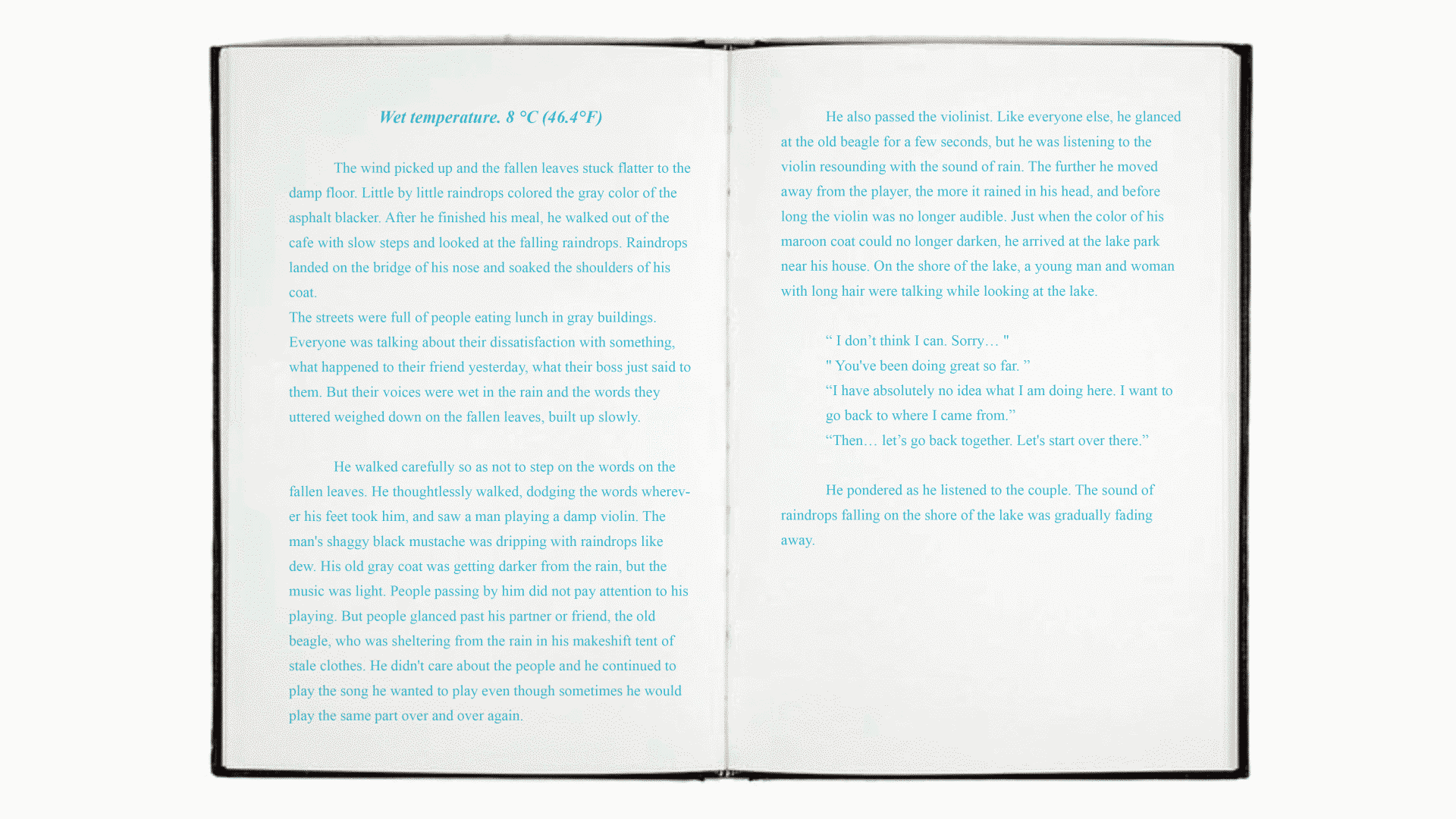 "Temperature" is a short story about an old man experiencing life through the sensations of temperature.
